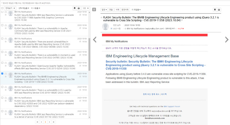 그림 3. IBM 보안 업데이트 메일링
