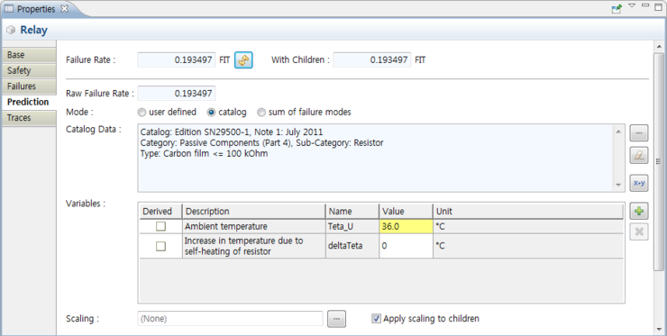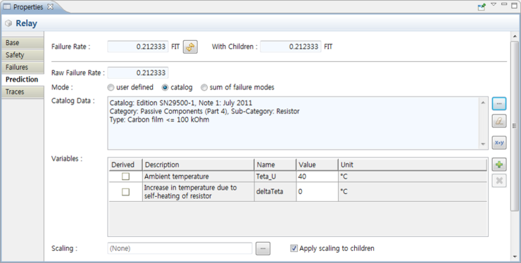 ** 다음의 그림은 SN29500을 활용하여, 특정 Resister에 대한 고장률을 적용한 예시이다. **