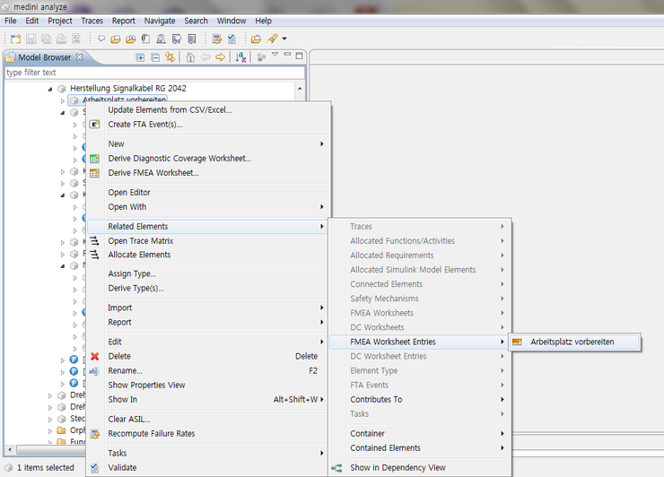MSR 포맷의 FMEA 데이터 파일을 medini analyze에 Import를 할 경우, 아키텍처 구성에 필요한 엘리먼트를 자동으로 생성할 뿐만 아니라, 아키텍처의 엘리먼트와 FMEA 데이터 간 추적성이 자동으로 확보됩니다.